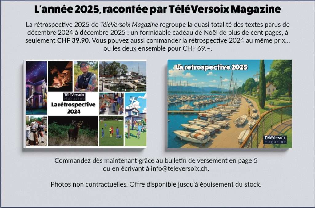 L’année 2025 racontée par TéléVersoix Magazine Commandez ce livre au prix de CHF 39,90,- ou les deux livres (rétro 2024 et rétro 2025) au prix de 69 francs. Commande via l’adresse info@televersoix.ch. Offre disponible jusqu’à épuisement du stock.