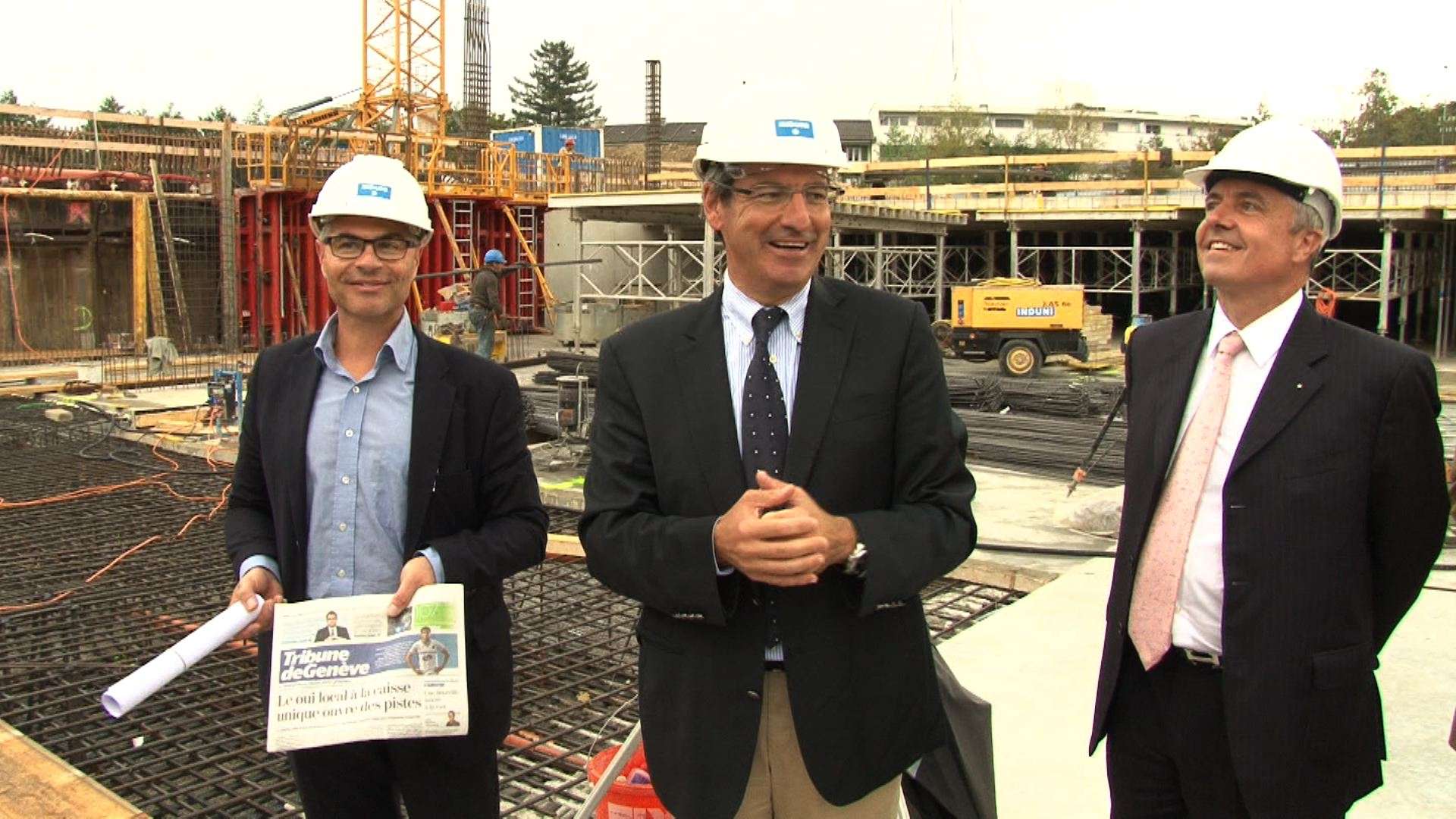 La pose de la 1ère pierre du chantier de La Scie à Versoix.